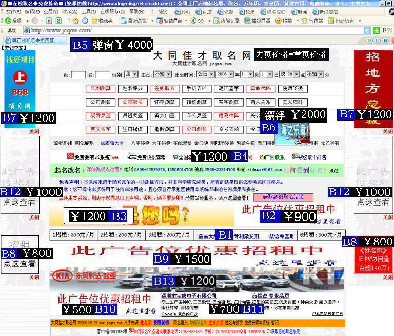 時間長可優(yōu)惠(半年9折,整年8.5折,2年8折)。若要其他位置請具體聯(lián)系。要定廣告,匯款方法見這里! |